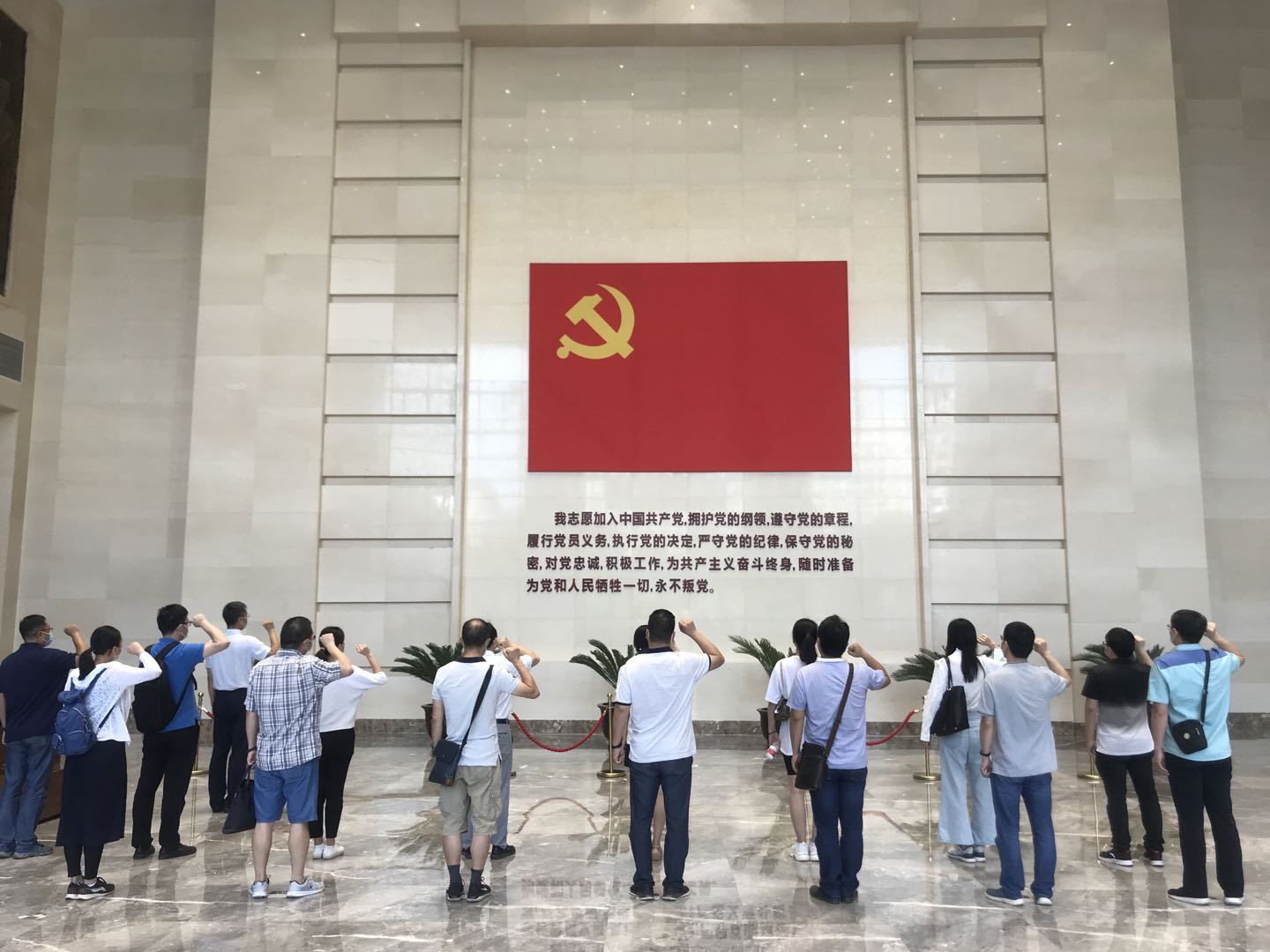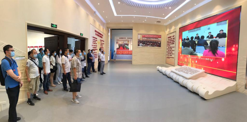 在展馆大厅鲜红的党旗和入党誓词展示墙前,全体党员庄严肃立,重温入党誓词。在讲解员的带领下,大家依次来到“中国古代廉政文化”、“中国共产党党风廉政建设”、“新时代河南全面从严治党成果”三个主题展厅接受精神洗礼。展厅通过图片、文字、影像和雕塑等多种表现方式,采用现代信息技术手法,直观生动地展示了中华民族五千年的廉政思想、制度、人物和故事,中国共产党近百年的党风廉政建设历程以及我省全面从严治党成果。
