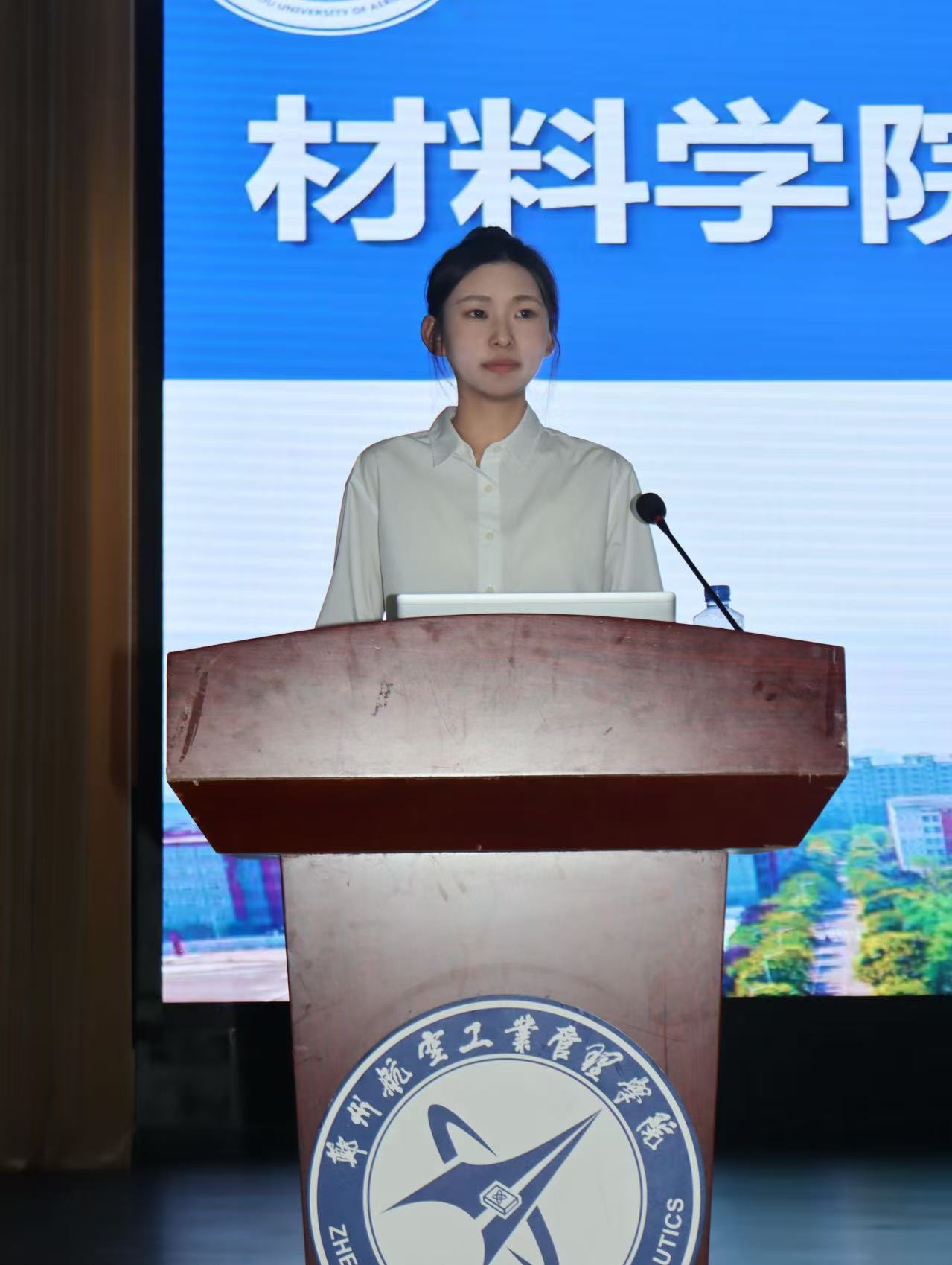 2025级新生代表王蓉同学以军训感悟为引,呼吁同学们以知识为根基充实自我,以专业为导向勇于实践,承诺将“严谨、求实、开拓、进取”的校训融入日常,主动参与科研实践,将个人理想融入祖国航空航天事业发展之中。