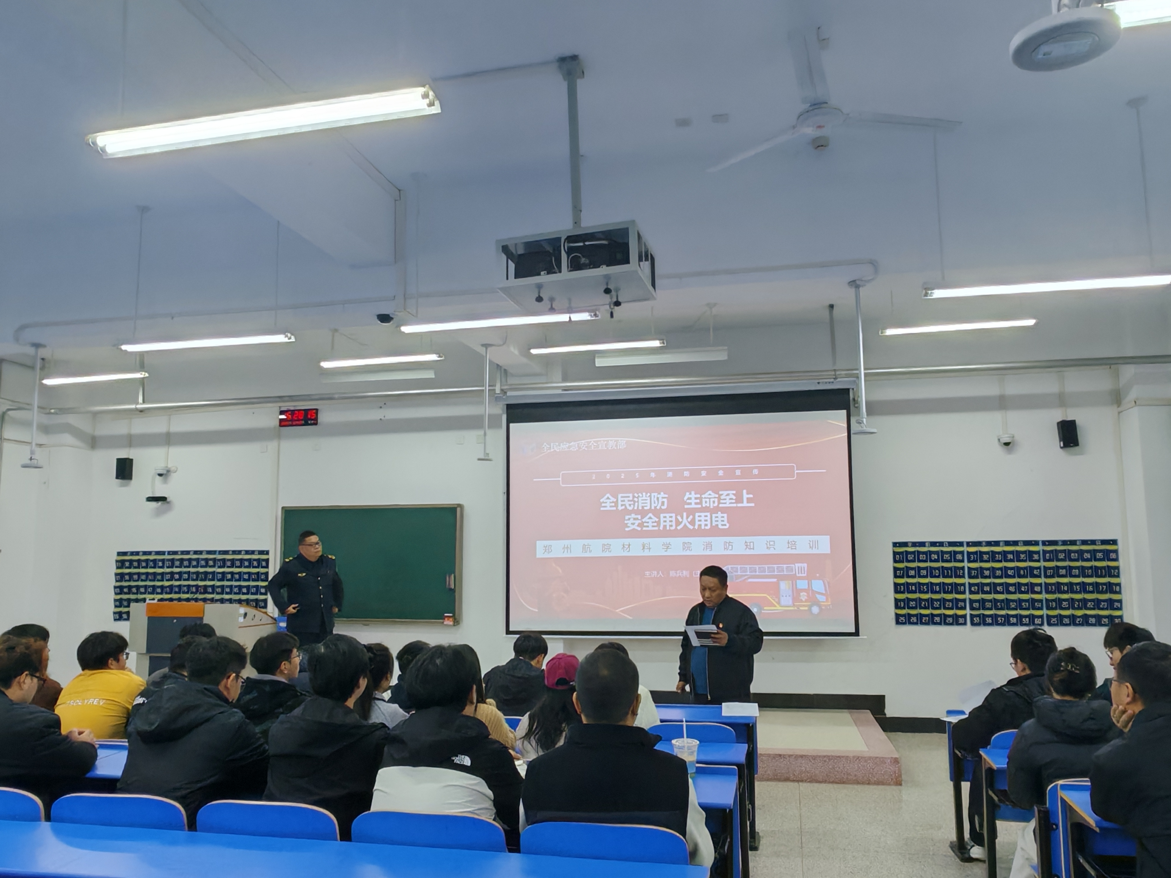 李攀、陈兵利凭借其丰富的专业知识和实践经验,为我院师生带来了一堂深入浅出、警示性强的消防安全知识普及课。他们结合高校特点和近期典型案例,详细剖析了实验室、宿舍等场所常见的火灾隐患、起火原因及巨大危害,重点讲解了如何预防电器火灾、规范实验操作、紧急情况下如何正确报警、疏散逃生及初期火灾扑救等关键知识和技能。