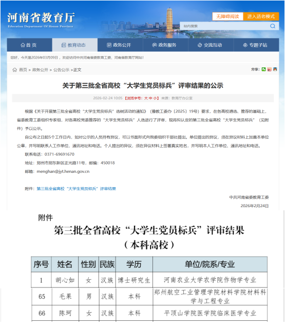 毛果同学入选全省高校“大学生党员标兵”,既是其个人刻苦学习、努力拼搏的结果,更是我院深入推进党建工作与人才培养、科研创新、实践育人深度融合的生动体现。